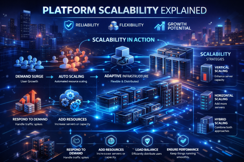 확장성은 크게 수직 확장(Vertical Scaling)과 수평 확장(Horizontal Scaling)으로 나뉩니다. 수직 확장은 기존 서버의 성능을 업그레이드하는 방식이며, 수평 확장은 여러 대의 서버를 추가하여 부하를 분산시키는 방법입니다. 대부분의 현대 플랫폼은 유연성과 안정성을 위해 수평 확장을 선호하며, 이를 통해 더 많은 사용자를 효율적으로 처리할 수 있습니다. 이러한 접근 방식은 시스템 장애 위험을 줄이고 전체적인 성능을 향상시키는 데 기여합니다.
