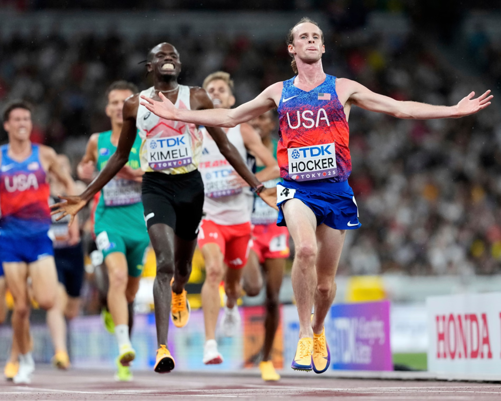 작년 파리 올림픽에서 콜 호커는 1500m 이상을 완주하며 육상에서 가장 파괴적인 피니시 킥을 선보였습니다. 도쿄에서 열린 5,000m 이상의 경기에서 미국 선수는 이 메시지를 더욱 강력하게 강조했습니다.마지막 바퀴를 도는 벨이 울렸을 때 호커는 11위에 머물렀고, 선두에서 거의 15미터 떨어져 있었습니다. 하지만 그는 빠르게 경쟁자들을 따돌리기 시작했고, 마지막 도약의 타이밍을 완벽하게 맞추며 벨기에의 아이작 키멜리를 제치고 12분 58.30초 만에 금메달을 획득했습니다. 지미 그레시에는 10,000미터 금메달에 동메달을 추가했습니다.