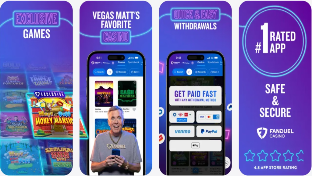 FanDuel은 원활한 뱅킹과 사용자 친화적인 결제 옵션으로 유명한 빠르게 이동하는 즉시 인출 카지노 옵션으로 눈에 띕니다. 직불카드, PayPal, Venmo, 온라인 뱅킹, Play+ 선불카드를 사용하여 출금하고 우편으로 확인할 수 있습니다. FanDuel 카지노에서 가장 빠른 출금 방법은 직불카드, PayPal, Venmo, Play+ 선불카드로, 각각 24시간 이내에 처리됩니다. FanDuel 카지노 프로모션 코드와 함께 제공되는 환영할 만한 혜택은 인기 있는 허프 앤 퍼프 시리즈의 슬롯 게임을 플레이할 수 있는 최소 보증금 5달러의 보너스 스핀 1,500개를 제공합니다.